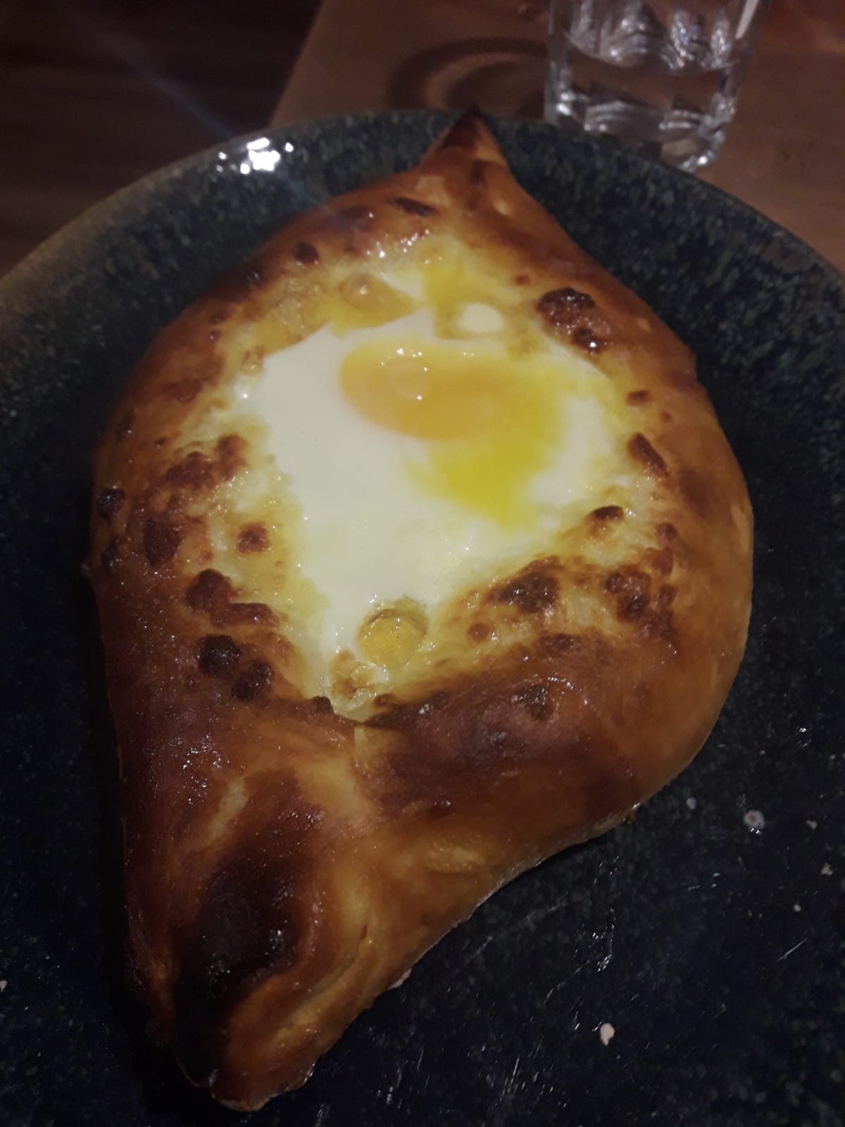 חצ'פורי: אז מסתבר שחצ'פורי בגדול הוא לא מה שאנחנו מכירים מהארץ כסירת בצק עם גבינה וביצה בפנים. זה אמנם סוג מסוים של חצ'פורי (אדג'ריאן חצ'פורי). החצ'פורי האחרים מזכירים יותר בצק של מלוואח עם גבינה בפנים. זה לרגע לא הופך אותם לפחות טעימים. כמעט בכל המסעדות הם מגיעים כמנה אדירה בגודלה, שמספיקה בשקט ל4-6 אנשים.