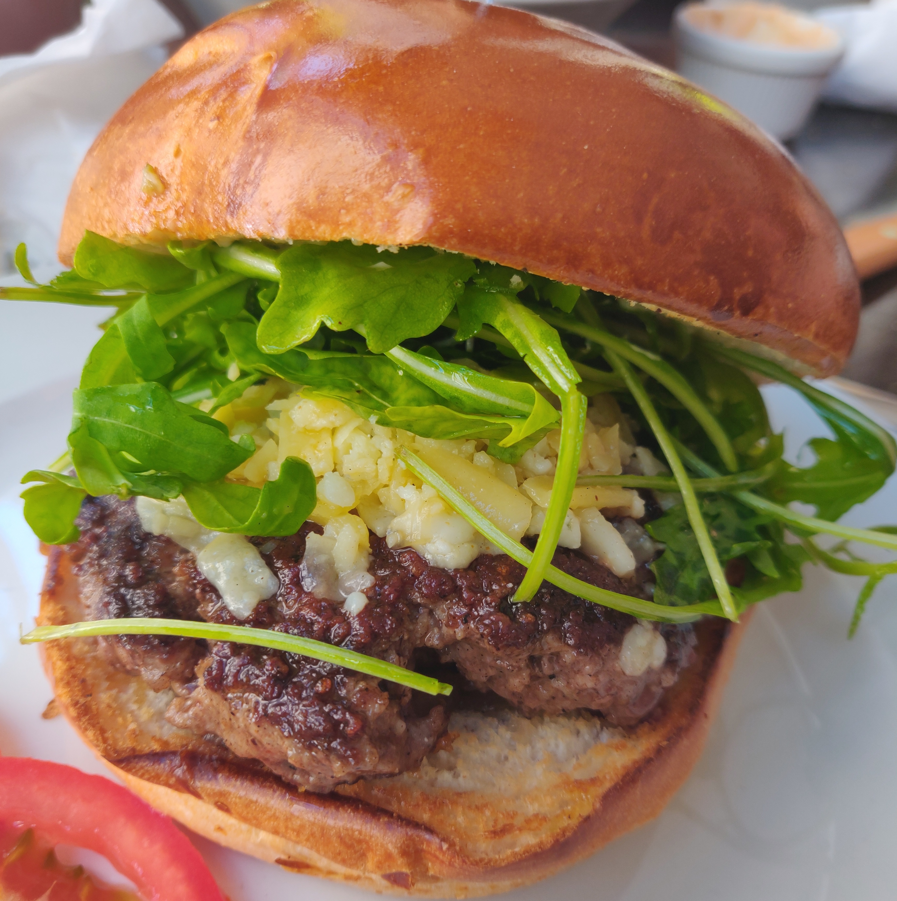 חמאת בוטנים אמנם אין (ממליץ למקום לשקול את זה) אבל קומבינציות אחרות יש בלי סוף. אני לקחתי את "המשרד של אבא" שמושפע בעיקר משילוב בין תערובת גבינות (כחולה וגרוייר) ורצועות קטנות של בייקון. התוצאה הסופית היתה מאוזנת מאד, מעושנת במידה, יחד עם קציצה מאד סבירה זו היתה מנה מוצלחת מאד. את העגבניה ביקשתי בצד, אגב, ולדעתי צריך להוציא אותה משם כי היא סתם הורסת את האיזון.