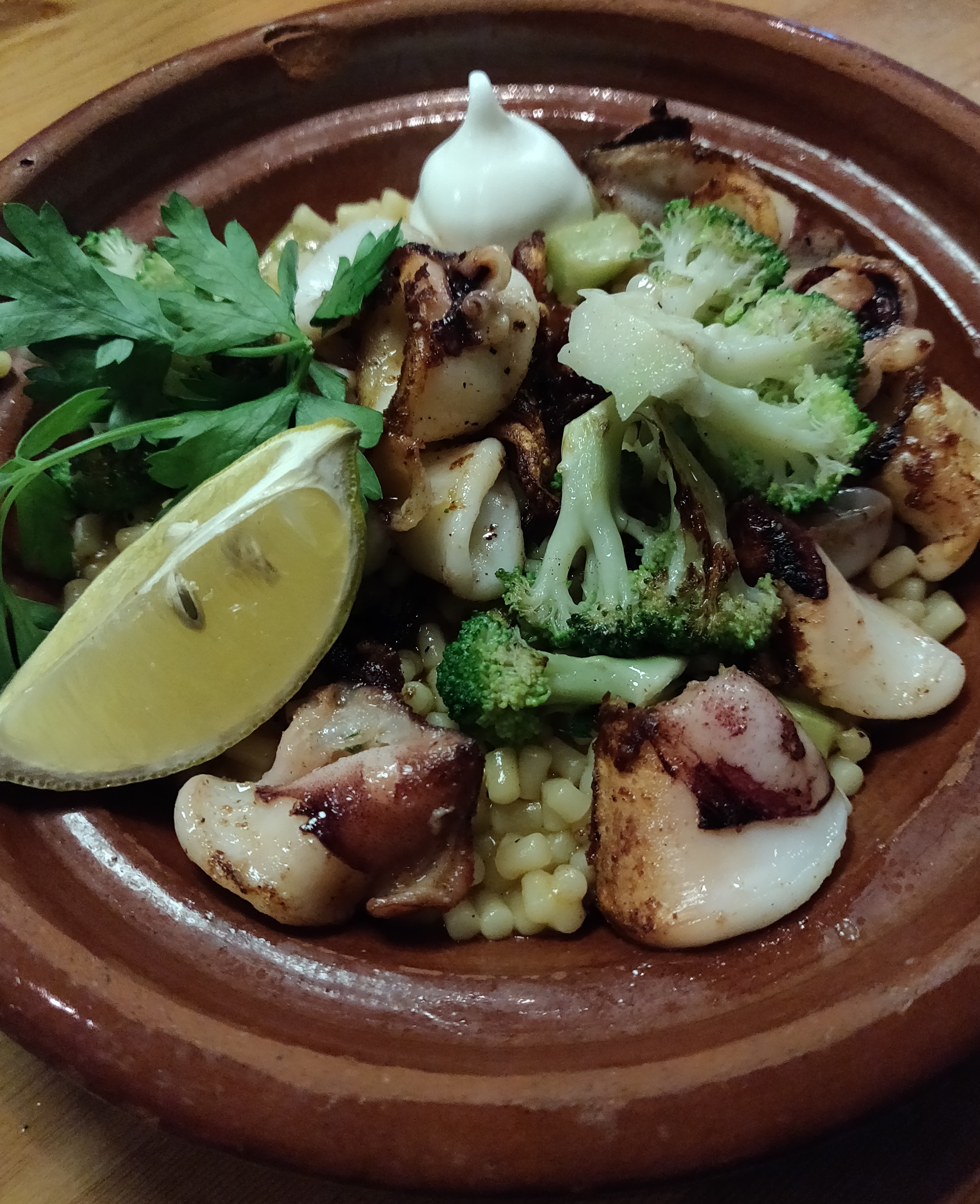 עוד לא הספקנו להתאושש מההלם של הטרטר והגיעה המנה השניה - קלמארי עשוי על הפלנצ'ה (66).