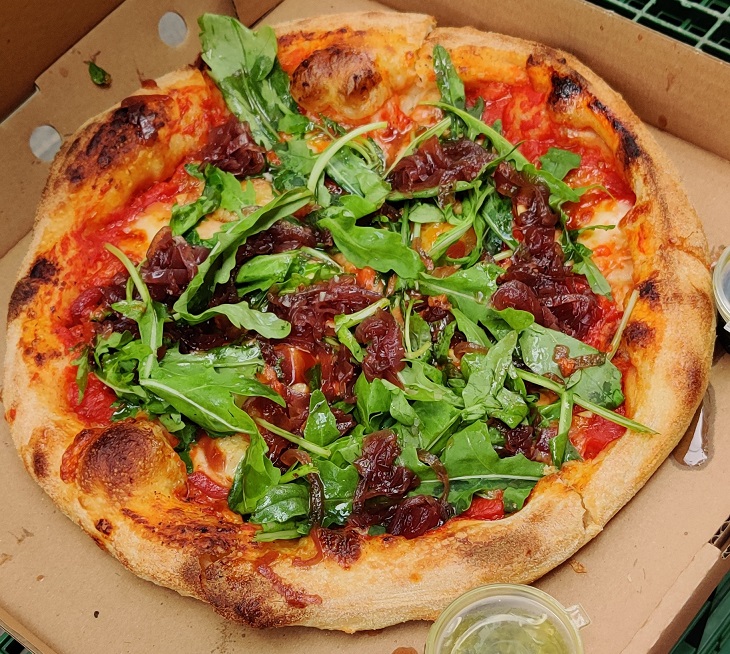 הראשונה שהגיעה - ריבת בצל. מוצרלה מתוגברת בגבינת עיזים. עלי אורוגולה. צנוברים. ורסק עגבניות.